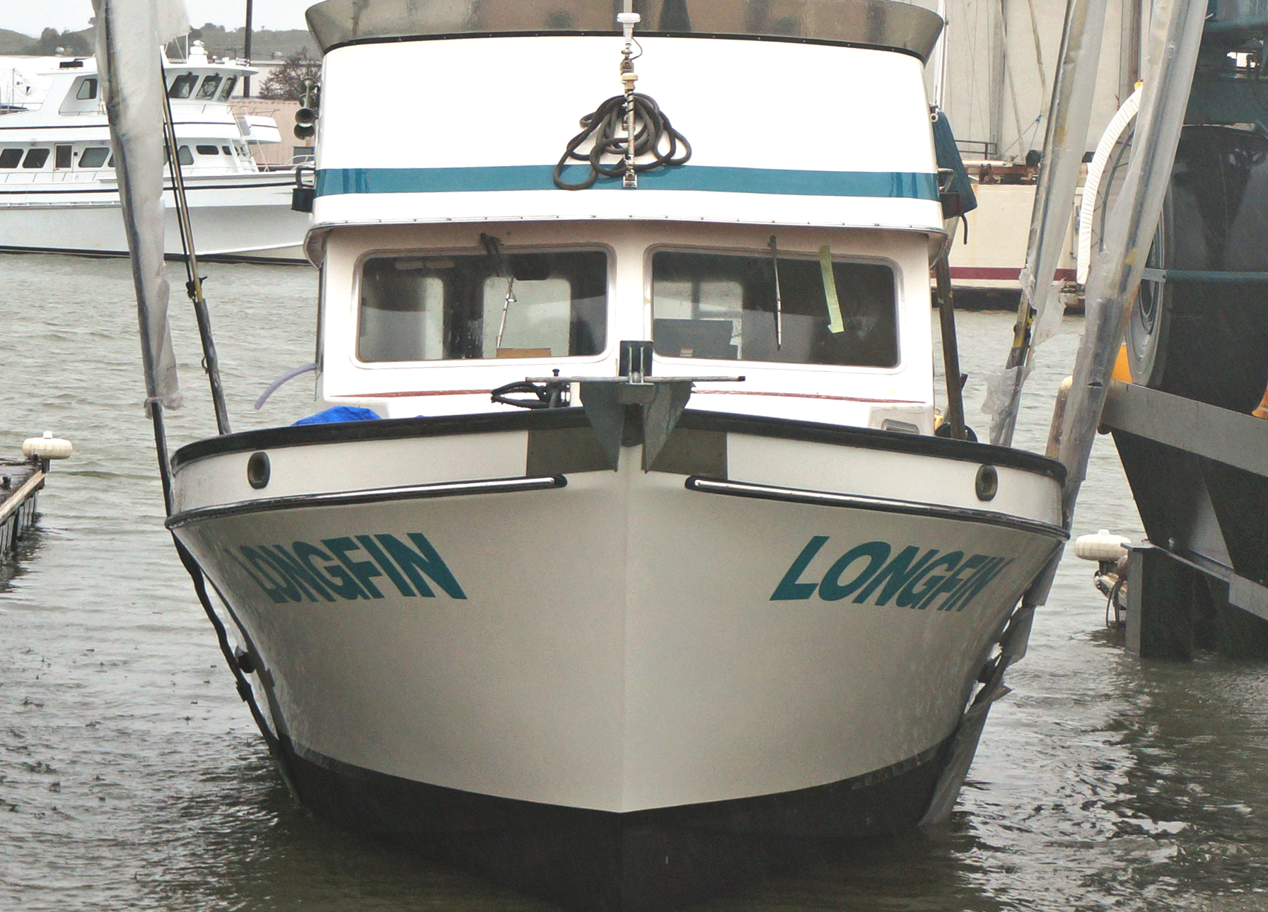 This commercial fishing vessel underwent a complete refit in the fall of 2018, and winter of 2019. She was completely re-powered, all new hydraulics, wiring, electronics, onboard systems, and bottom paint along with new Awlgrip topsides. The boat was essentially rebuilt - which wound up to be more practical than buying a new boat. New boats can take a significant amount of time to build, and cost exponentially more. We were called in to replace the original painted lettering with high performance vinyl.